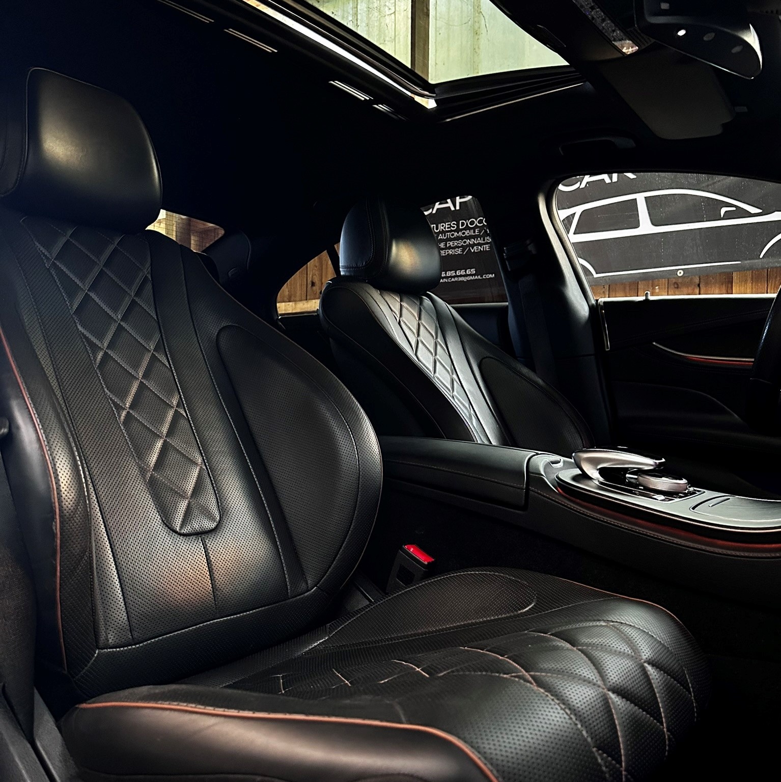 - Intérieur cuir étendu surpiqures bronze avec siège matelassé